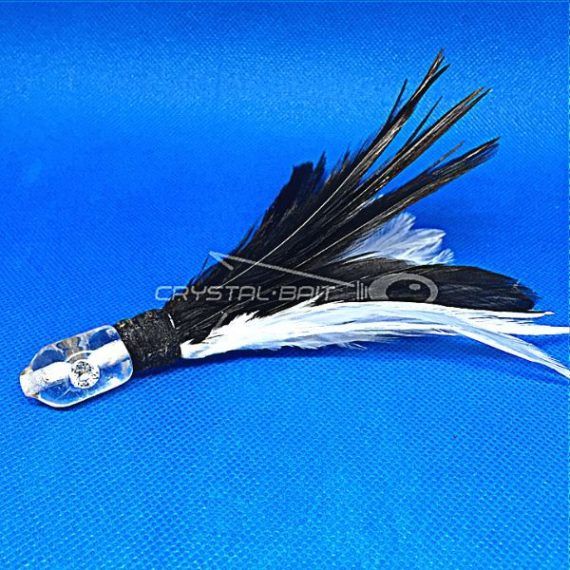 Su cabeza de cristal y pluma natural, lo asemeja a sardinas y jureles, siendo un bocado irresistible para grandes depredadores.